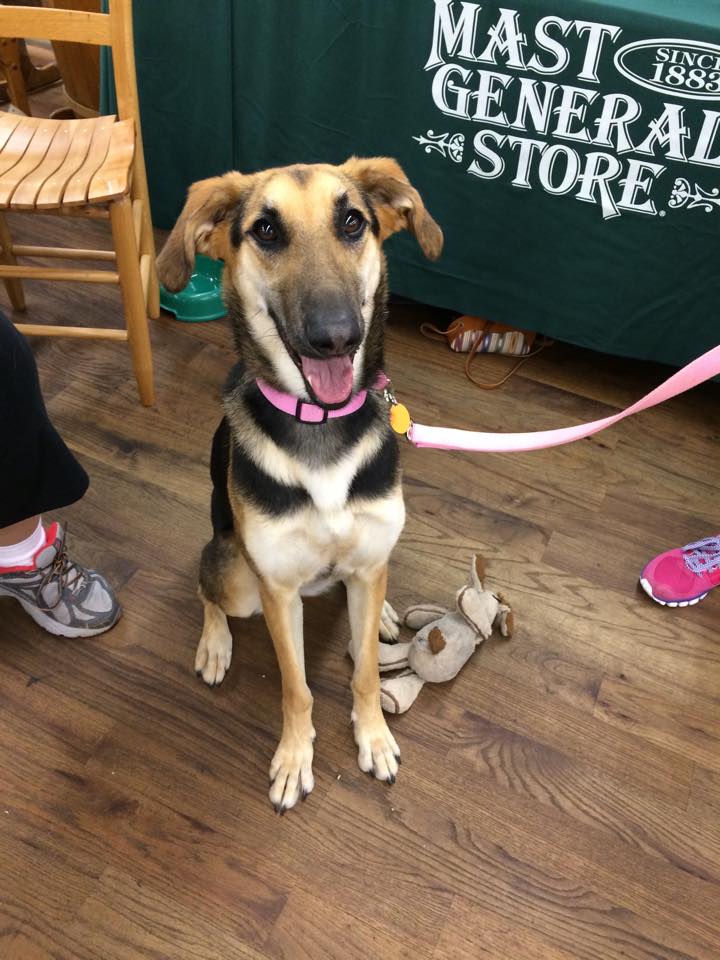Looking for love? Winnie is your gal! Winnie is a little over a year old, and we think shepherd/afghan hound mix. She is very smart and attentive, and she also loves to play with toys and people. Her long legs give her speed if someone is looking for a jogging buddy. Winnie worked with at-risk teens learning basic obedience training while helping her teen handlers learn patience and respect. She is spayed, fully vaccinated, micro-chipped, and on heartworm preventative. If you are interested, please come by to meet her.