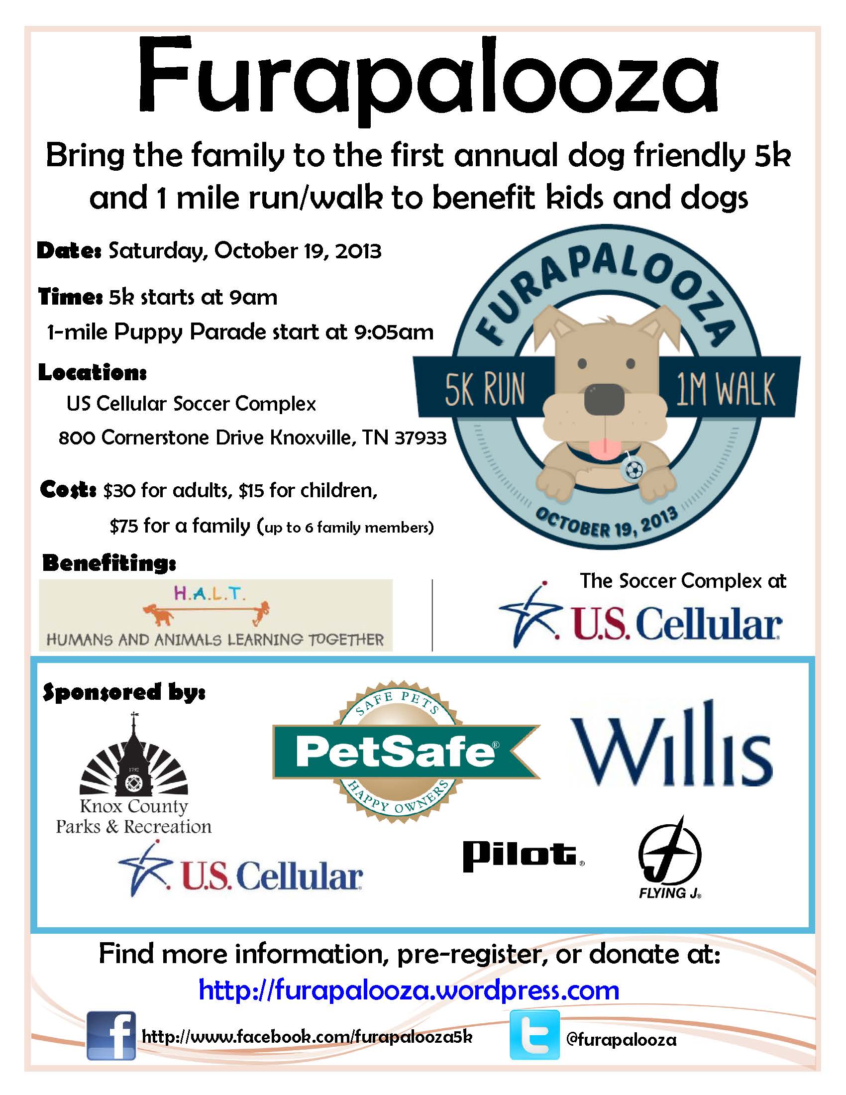 Bring the family to the first annual dog friendly 5k and 1 mile run/walk to benefit kids and dogs. The event will be held October 19th at 9am at the US Cellular park in west Knoxville. The 5k walk/run will start at 9 am, and the 1 mile will start about 9:05 am. Both should be done around 10-10:30 am for those wanting to catch the University of Tennessee vs. South Carolina game later on in the day.