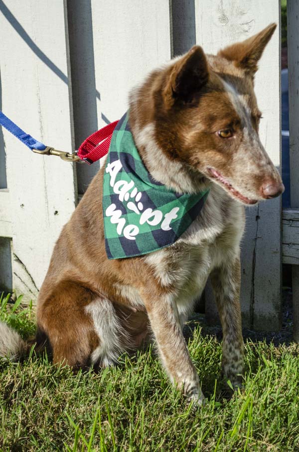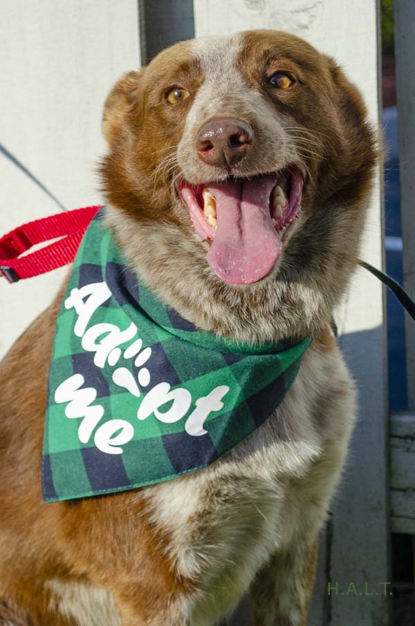 Foxy and soulful reddish-brown and cream coated Aussie Cattle Dog mix. Weighs 32lbs and between 3-6 years old. She has a happy-go-lucky temperament, exudes calm energy and has excellent manners. She’s a big lap dog and everyone who has met her has loved her instantly!