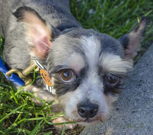 Tan & black male Yorkie (full size), 10lbs, and between 3-6 years old. Moose is a very sweet boy (we could’ve spelled his name ‘Mousse’, he’s that sweet) and is a big fan of belly rubs.