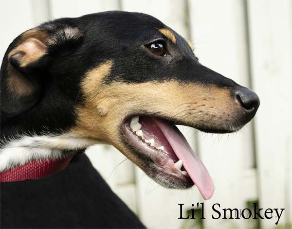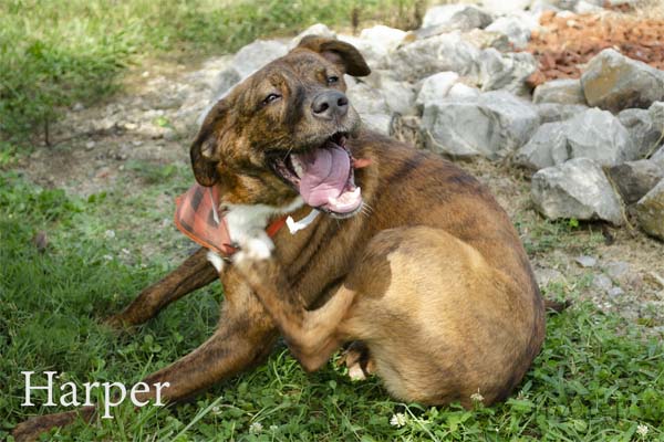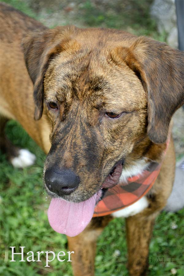 A fun girl that has lots of energy! Black & tan brindle hound lab mix, approximately a year old, and 47 pounds.