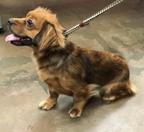Spring appears to be a spaniel/dachshund mix. She was a bouncy, active dog during our initial time with her (hence her name). She is approximately 2 years and 16 lbs.